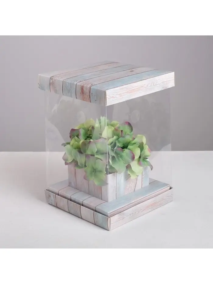 Коробка для цветов с вазой и PVC окнами складная «Нежность», 16 х 23 х 16 см