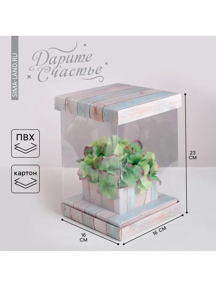 Коробка подарочная для цветов с вазой и PVC окнами складная, упаковка, «Счастье», 16 х 23 х 16 см