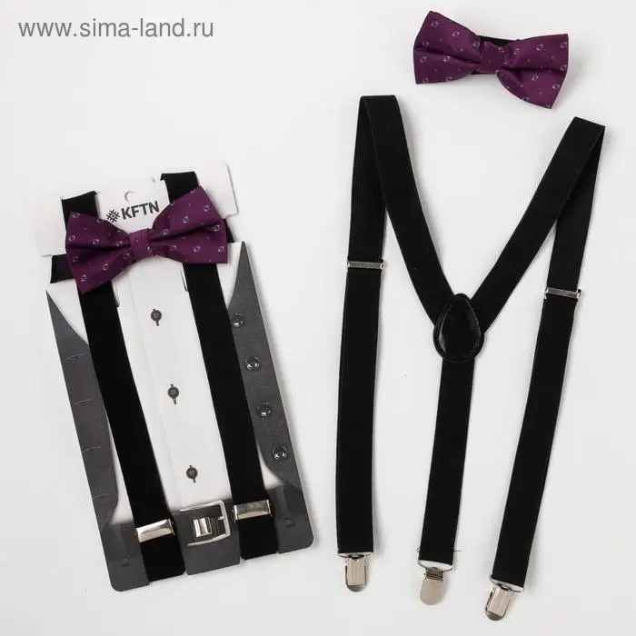 Подтяжки: 57‒185 см. Бабочка: 12 х 7 см, обхват шеи 20‒40 см.