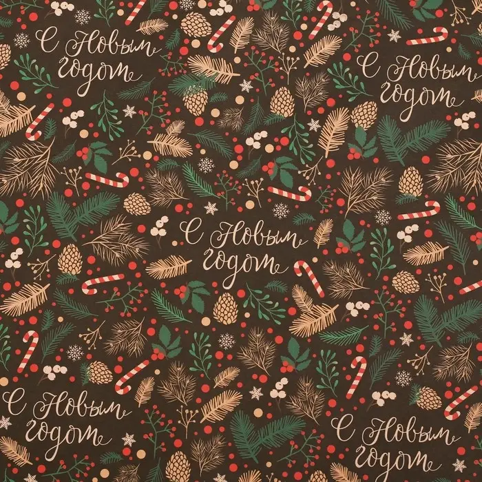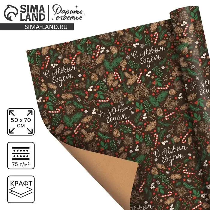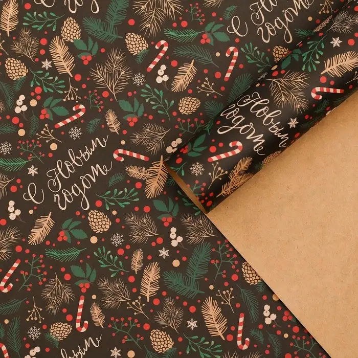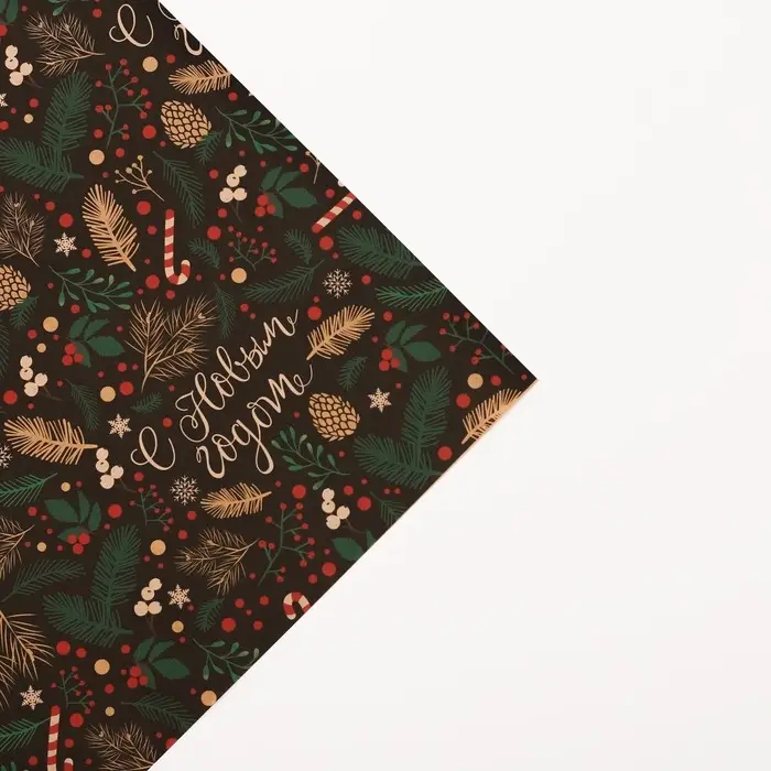 Бумага упаковочная новогодняя крафтовая «Ветви», 50 х 70 см