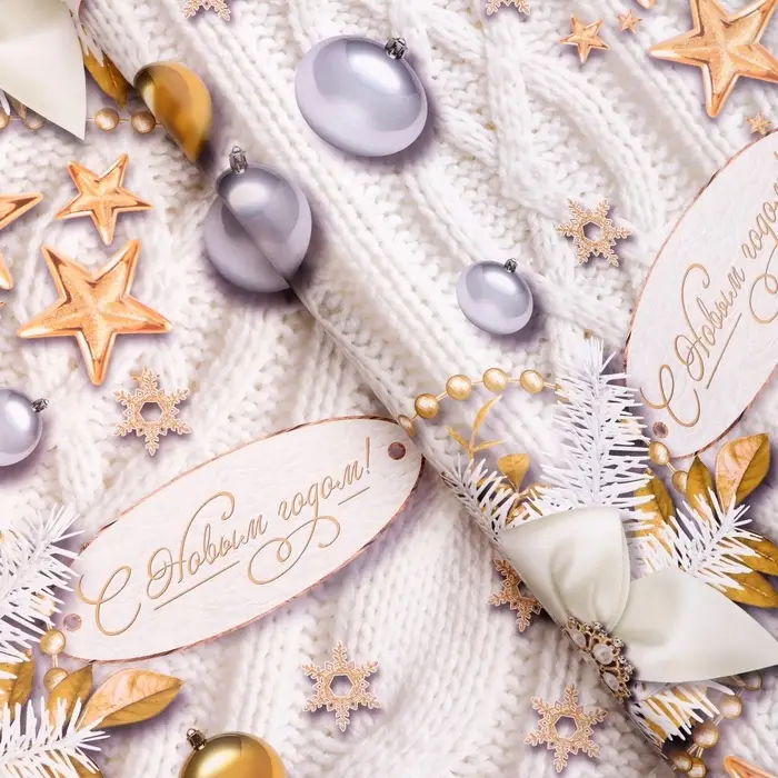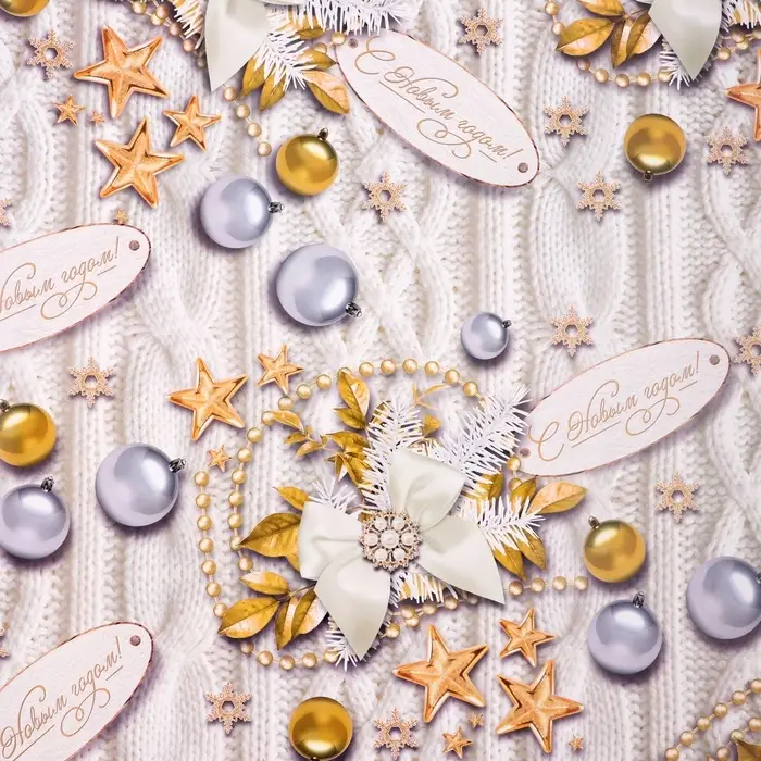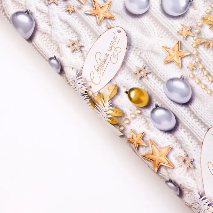 Новый год. Бумага упаковочная глянцевая "Бирки ", 70 х 100 см,1 лист,