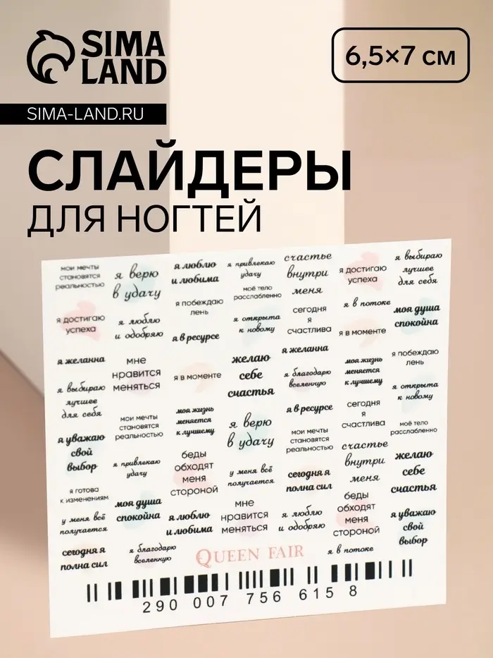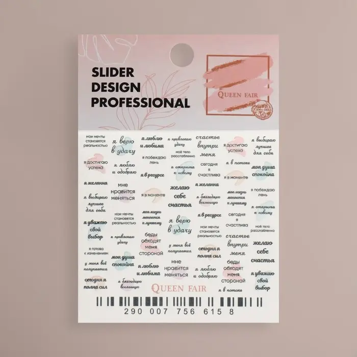 Слайдеры для ногтей «Аффирмации», разноцветные