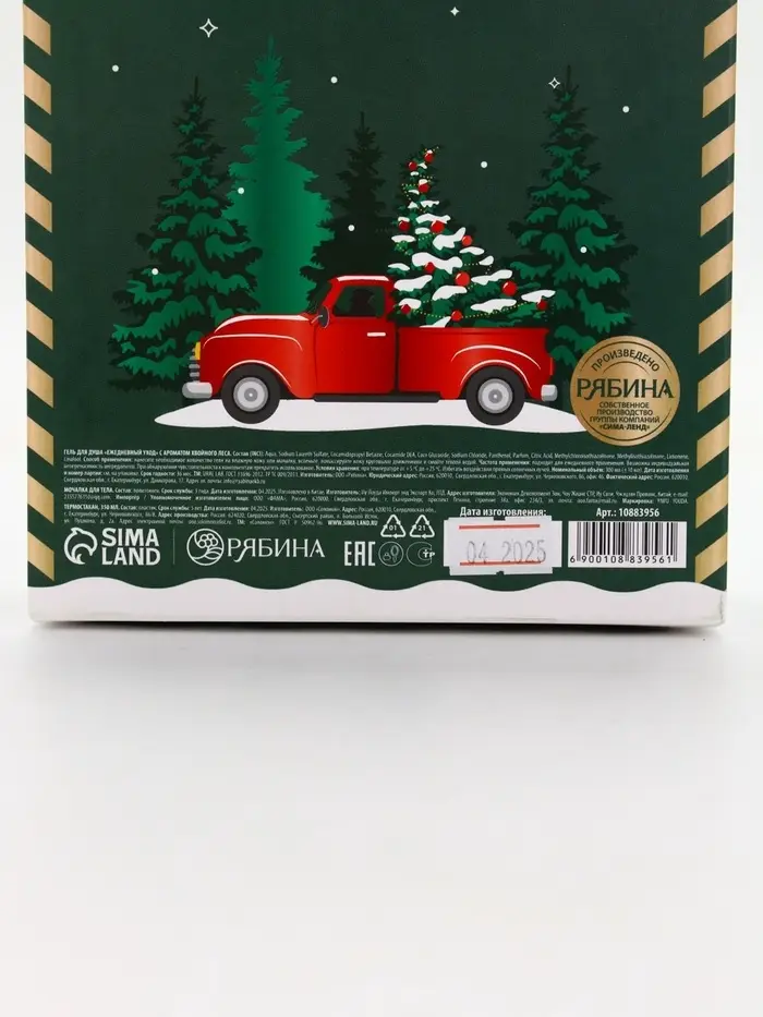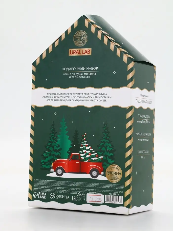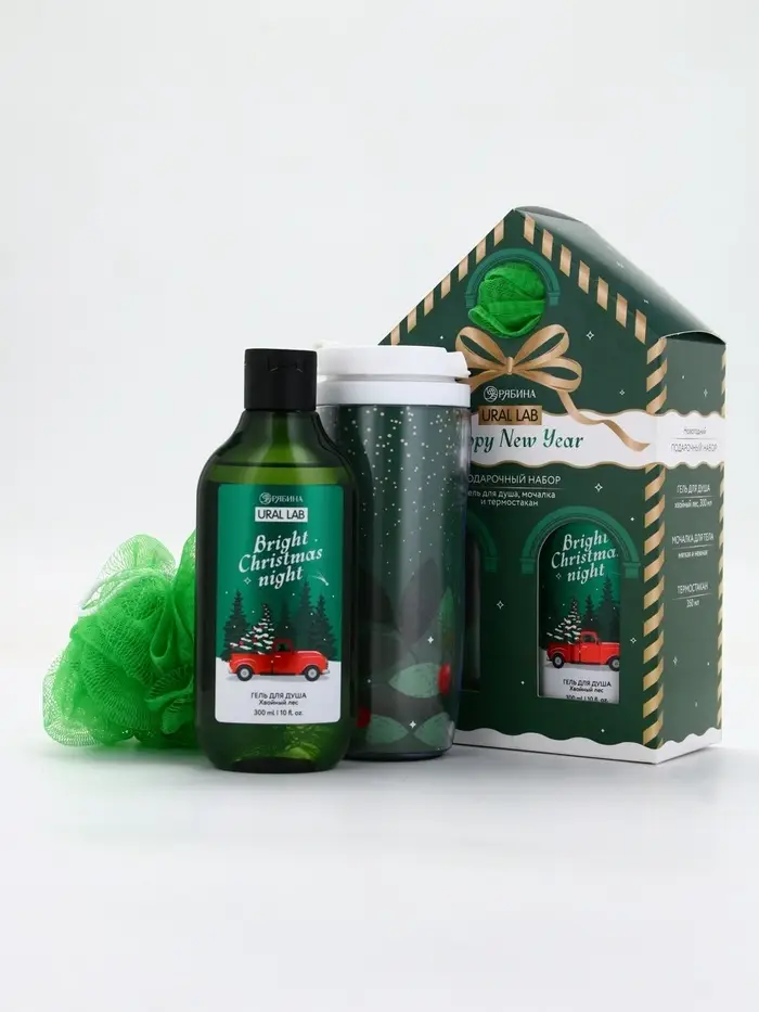Подарочный набор Happy New Year: гель для душа, мочалка и термостакан, аромат хвойный лес, URAL LAB