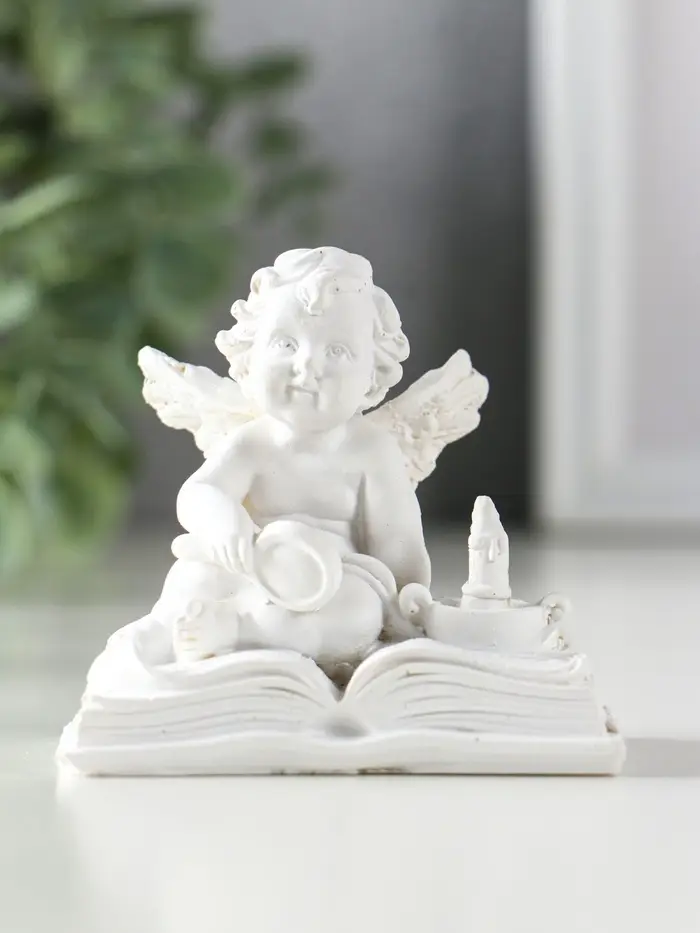 Сувенир полистоун "Ангелок с лупой на книге" белый 7,7х5х7 см