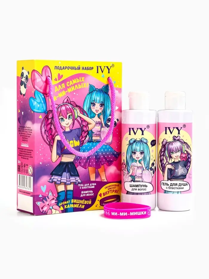 Подарочный набор детский IVY Вишневая карамель: шампунь 200 мл + гель для душа 200 мл + браслет сили