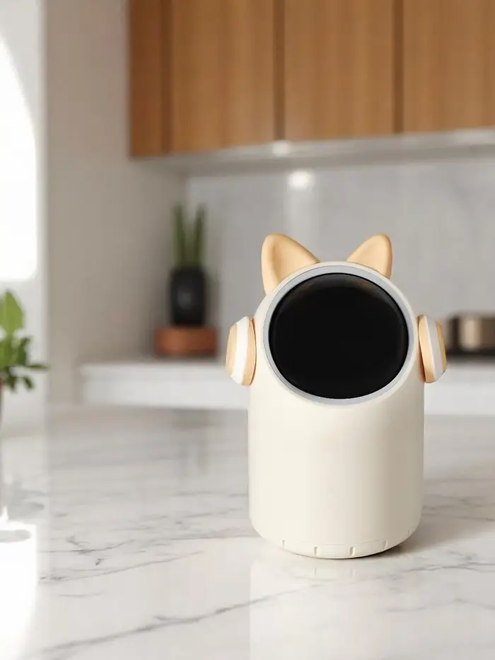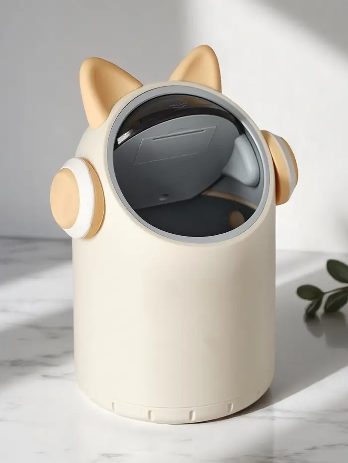 Ведро для мусора сенсорное, 2 л, в ушах и наушниках, бежевое