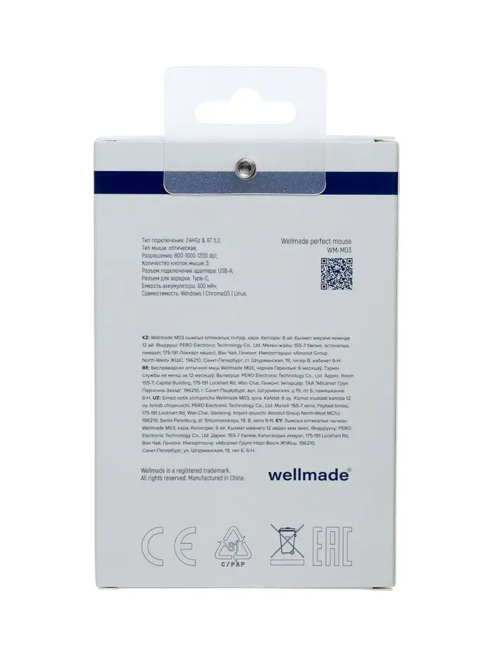 Мышь WELLMADE M03, беспроводная, оптическая, 1200 dpi, белая