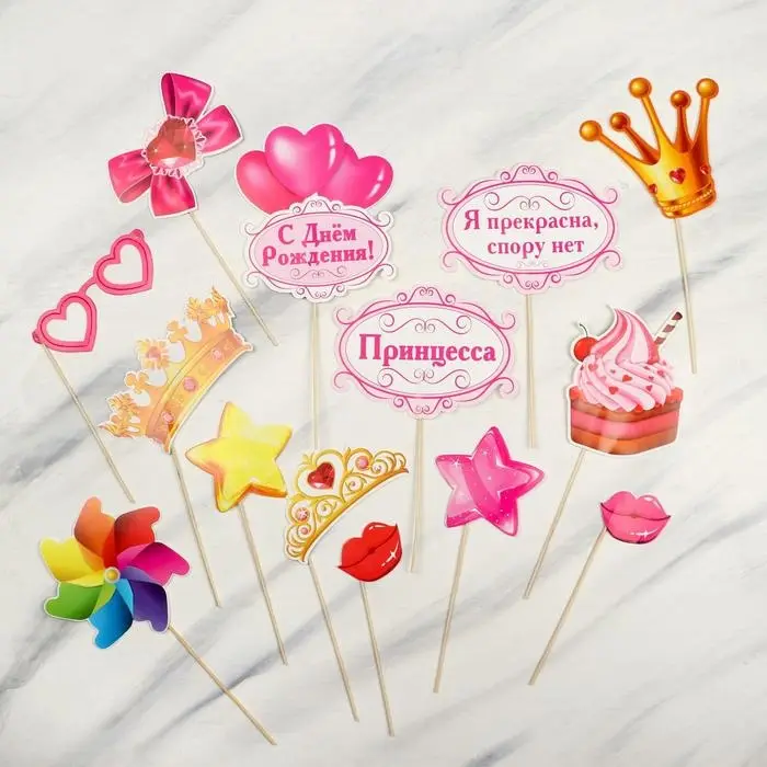 Набор фотобутафории «День рождения», 14 предметов, 20 х 30 см., 250 гр/кв.м
