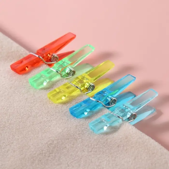 Небольшие пластиковые прищепки пригодятся, когда вам нужно будет зафиксировать ткань во время шитья. Они надёжно закрепят материал и не позволят ему смещаться во время работы. Станут отличной заменой булавкам: не зацепят и не порвут ткань. Также прищепки можно использовать в качестве декора или аксессуаров.