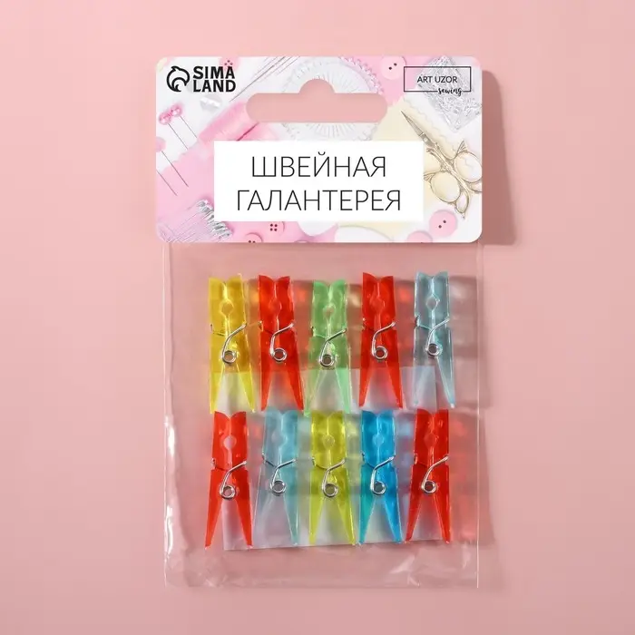 Прищепки для шитья, 3 × 0,5 × 0,3 см, 10 шт, цвет разноцветный