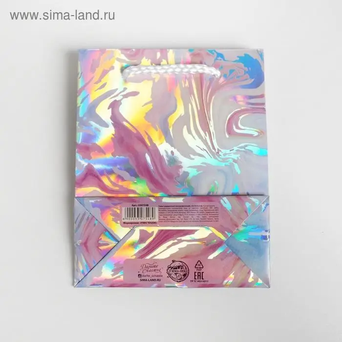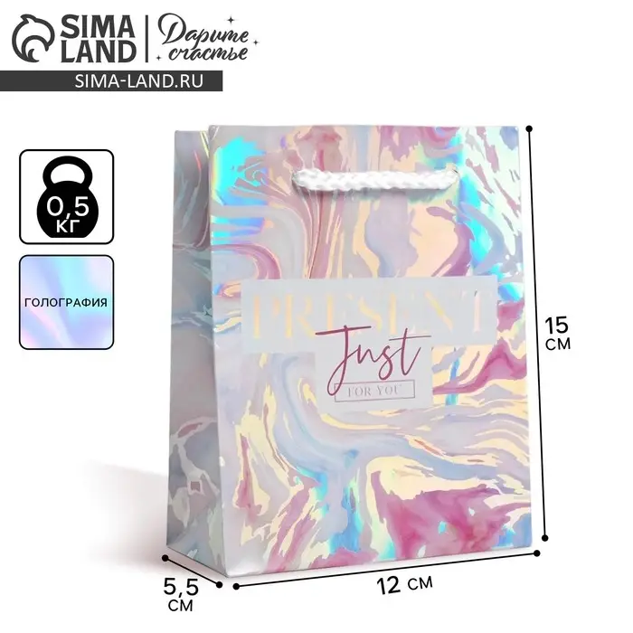 Пакет подарочный голографический, упаковка, «Present», 12 х 15 х 5.5 см