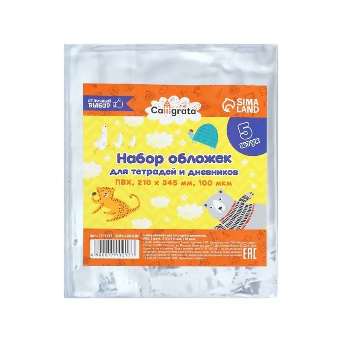 Набор обложек ПВХ 5 штук, 210 х 345 мм, 100 мкм, для тетрадей и дневников (в мягкой обложке)