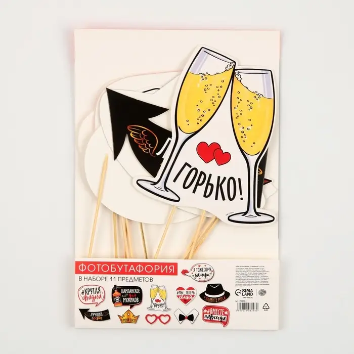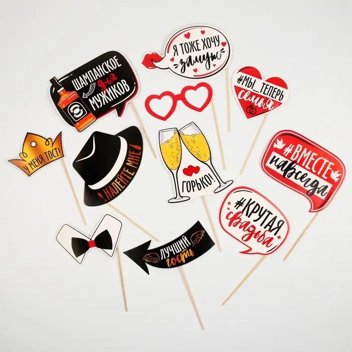 Набор для фотосессии "Крутая свадьба" 11 предметов. Аксессуары для фотосессий сделают любую вечеринку незабываемой, ведь ни один праздник не обходится без фото, будь то день рождения, гендерпати, 23 февраля, 8 марта, Новый год, свадьба или просто праздничная вечеринка. На любом празднике хочется выделяться, а карточки для фотобутофории отлично выполнят эту задачу, сделают вас заметным и неповторимым. Любой ребенок, девочка или мальчик, обязательно захотят сфотографироваться с набором аксессуаров для фотосессии. Данный набор фотобутофории отличный вариант для свадьбы, замечательно впишется в любую тематику торжества.