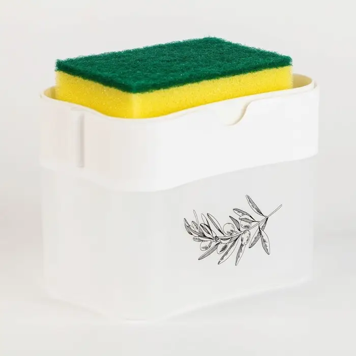 Диспенсер для моющего средства , прекрасное решение чтоб сделать мытье посуды более комфортным и быстрым а так же избежать мыльных подтеков от губки на раковине, т.к губка для мытья будет всегда лежать на дозаторе для моющего средства.