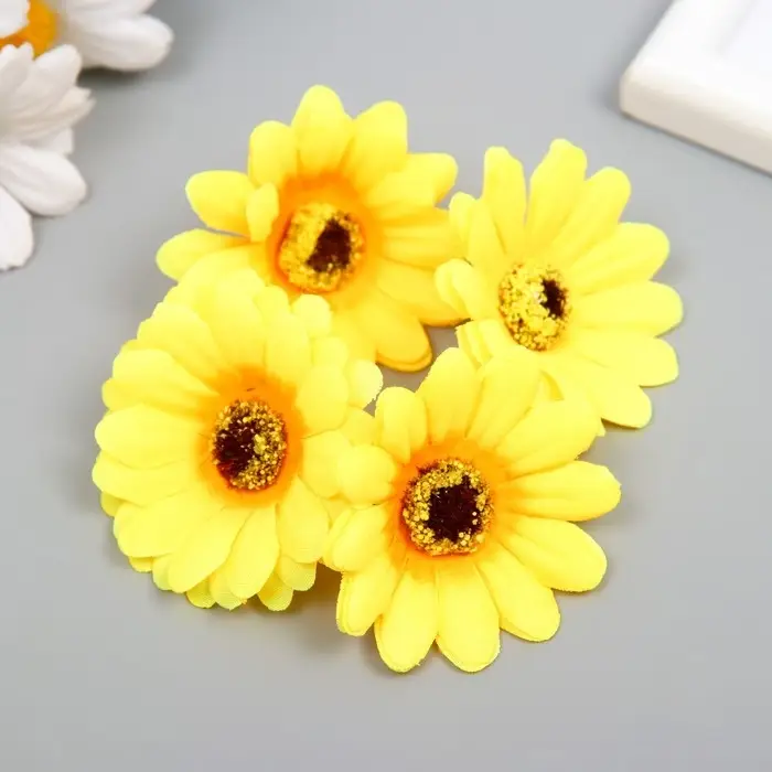 Бутон на ножке для декорирования "Хризантема-ромашка жёлтая" d=5 см