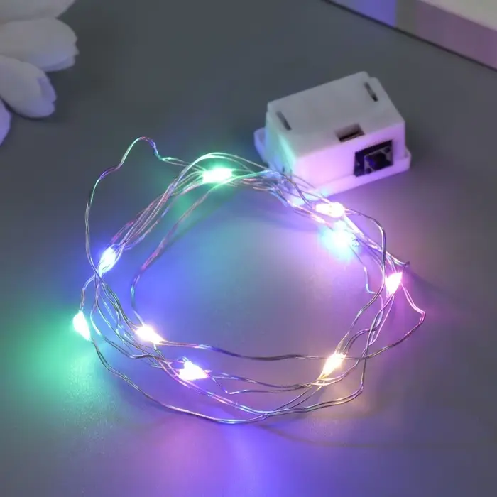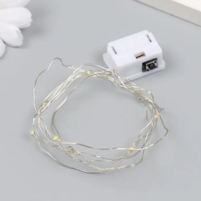 Нить светодиодная для сувениров, мульти, 10 диодов, длина 1 м, от батареек, 3хCR1130