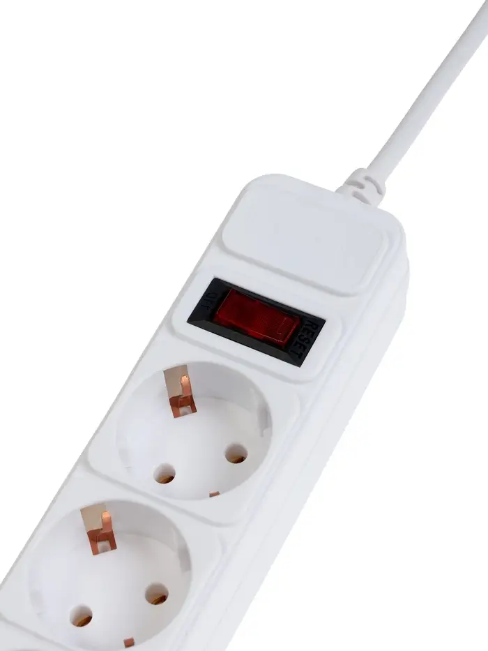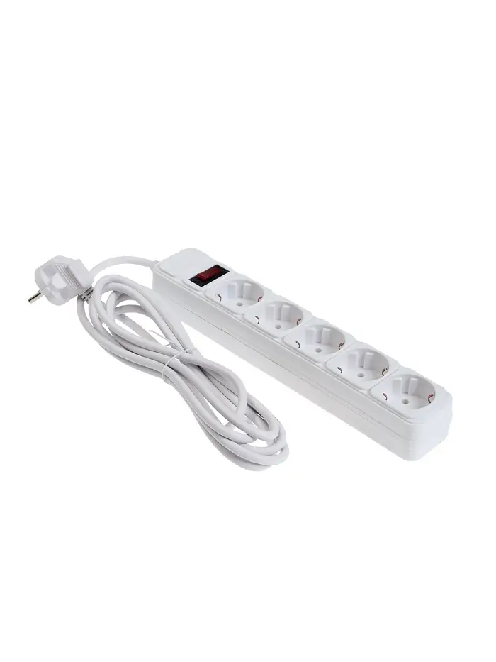 Сетевой фильтр СТАРТ, 5 розеток, 3 м, 10 А, ПВС 3×0.75 мм2, с заземлением, с выключателем, IP20, белый