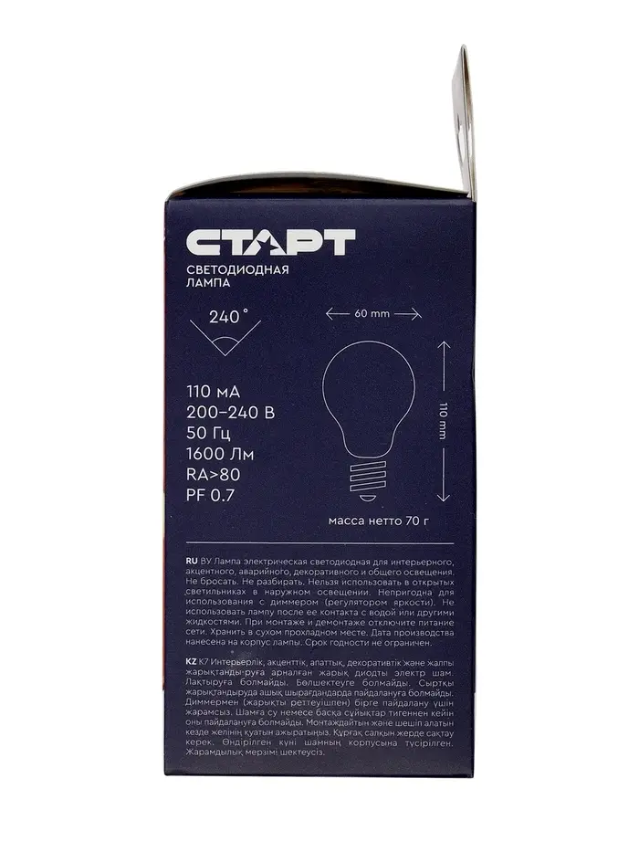 Светодиодная лампа СТАРТ мощностью 20 Вт с цоколем E27 и формой «груша» A60 — это надежный и энергоэффективный источник света для вашего интерьера. С нейтрально-белым свечением при цветовой температуре 4000K и световым потоком 1600 лм, она идеально подходит для рабочих и общественных помещений, где важна четкость и естественная цветопередача.