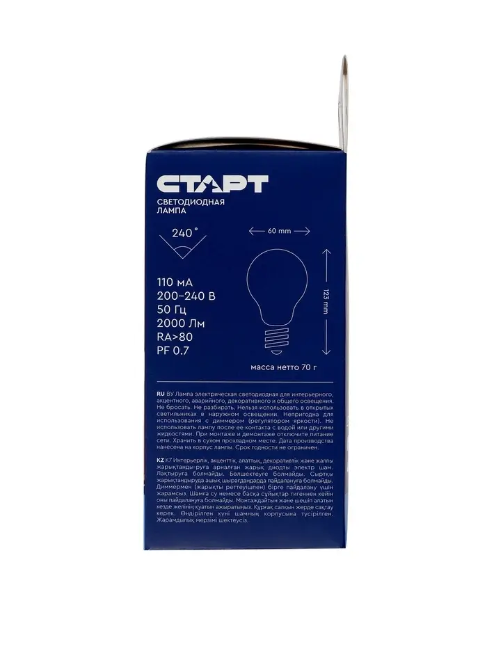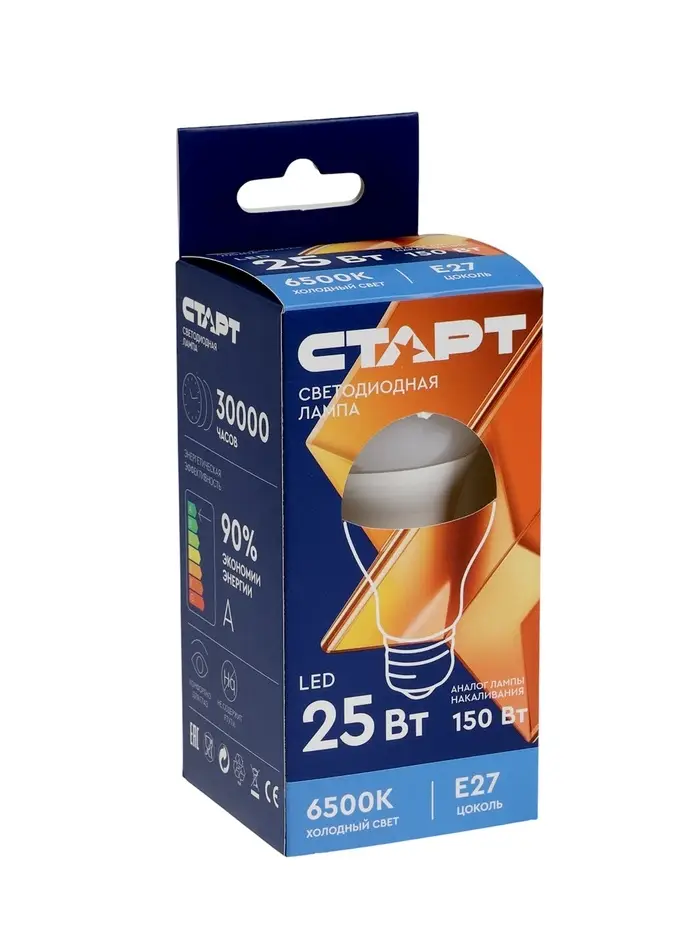 Светодиодная лампа СТАРТ — это современный и экономичный источник света, который обеспечит яркое и равномерное освещение в вашем доме или офисе. С мощностью 25 Вт и световым потоком 2000 лм она является отличной заменой традиционной лампе накаливания мощностью 150 Вт, при этом потребляя значительно меньше энергии.