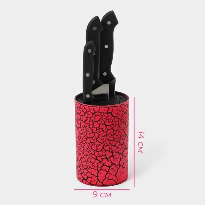 Подставка для ножей с наполнителем Доляна «Кракле», 14×9 см, soft-touch, цвет красный