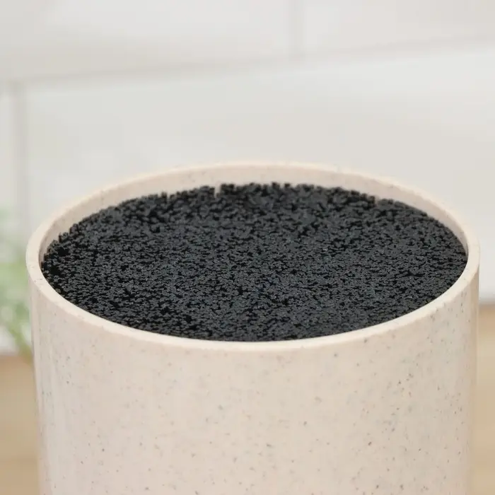 Подставка с наполнителем идеальна для ножа любой формы и длины, также подходит для кухонных ножниц.
