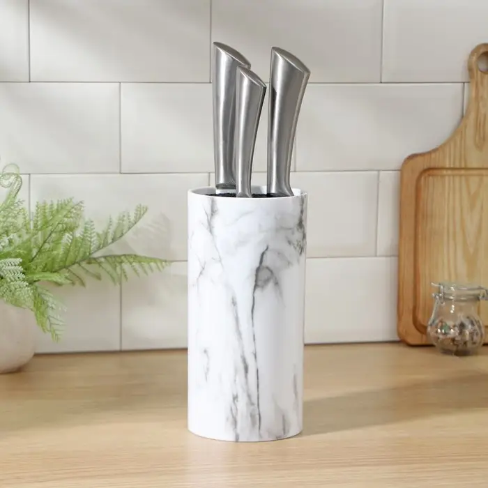 Подставка для ножей с наполнителем Доляна «Мрамор», 22×11 см, цвет белый