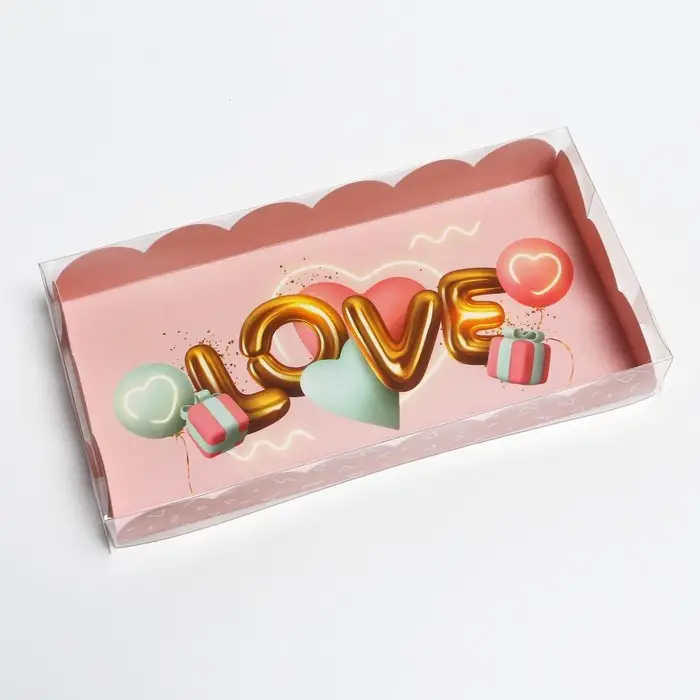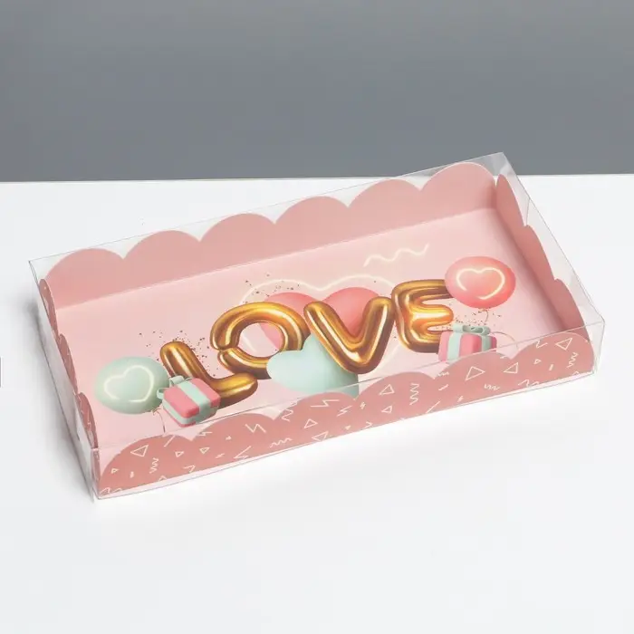 Коробка для печенья, кондитерская упаковка с PVC крышкой, «Воздушная любовь», 10.5 х 21 х 3 см