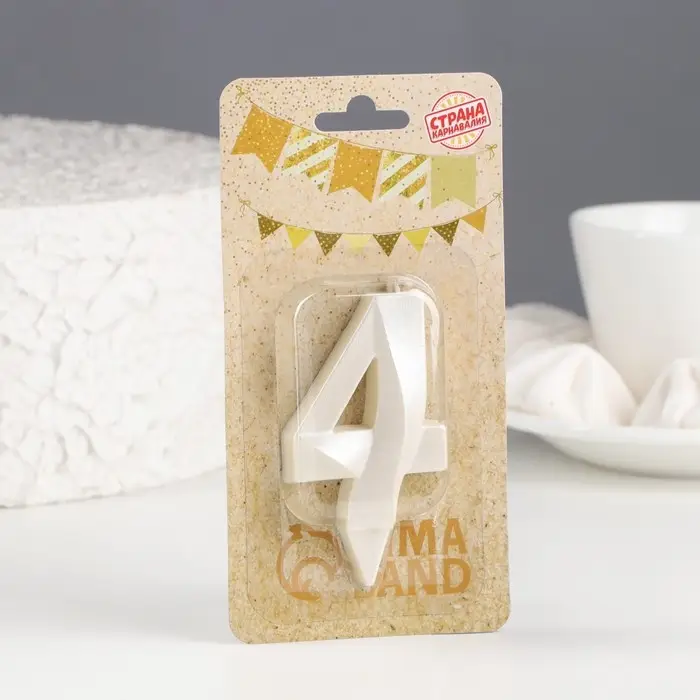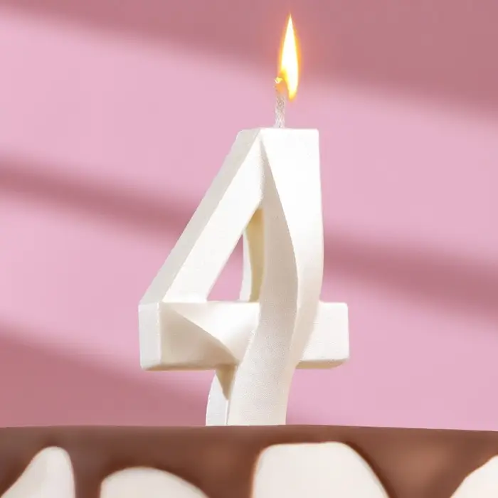 Свеча в торт «Грань», цифра 4, жемчужный, 6.5 см
