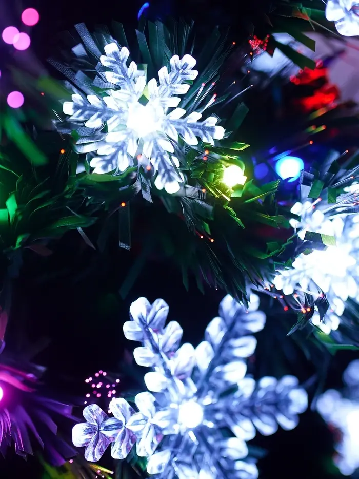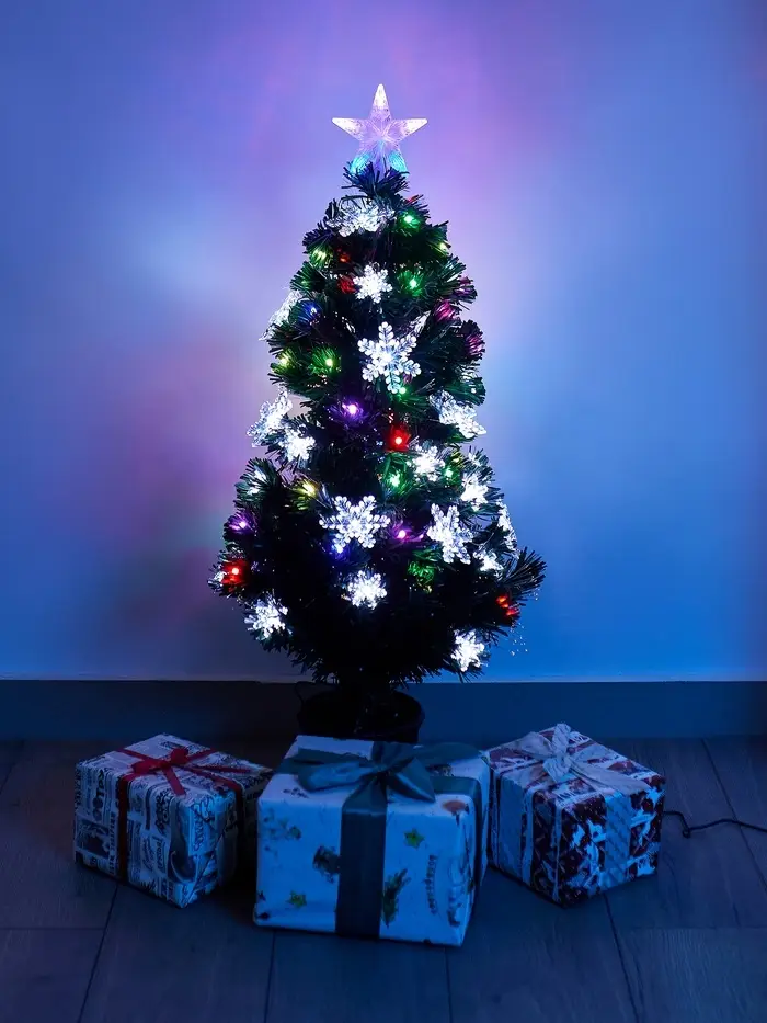 Ёлка фиброоптическая «Снежинки» 90 см, d нижнего яруса 45 см, 80 веток, мигание