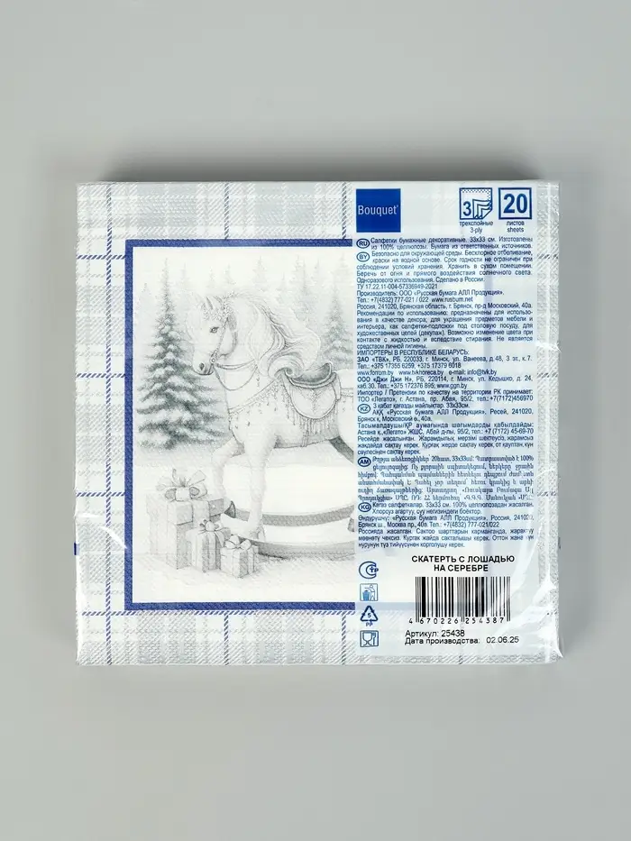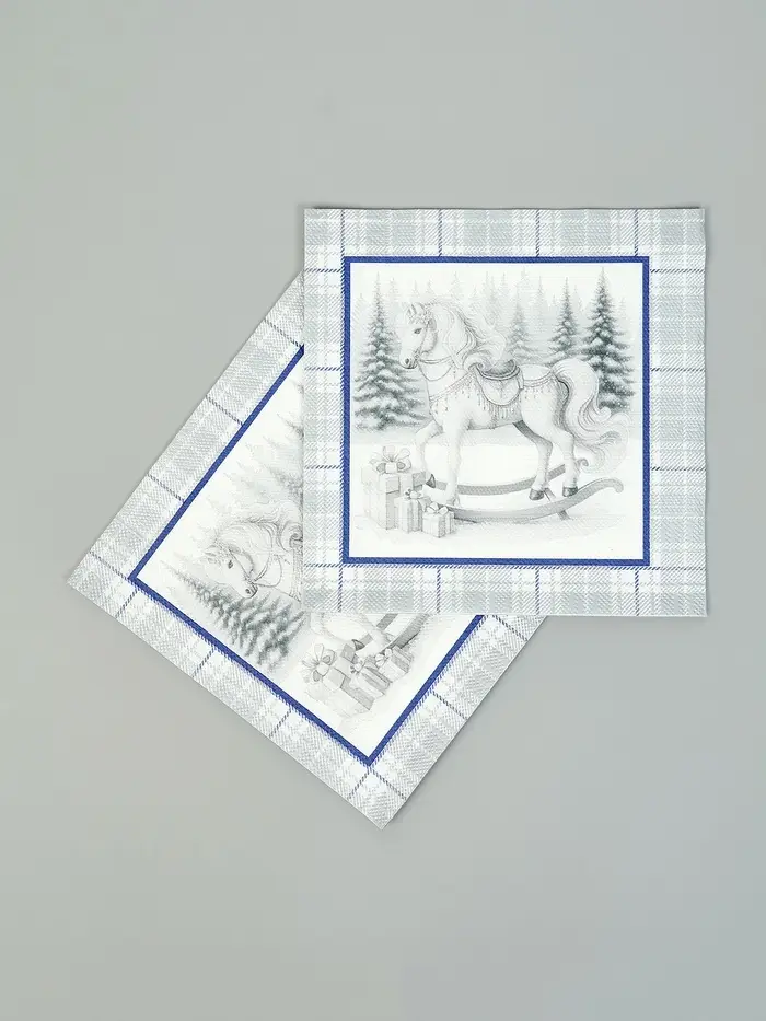 Салфетки бумажные трёхслойные «Скатерть с лошадью на серебре», 33х33, 20 шт