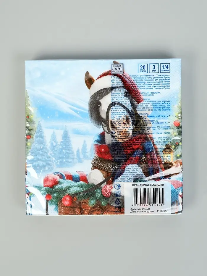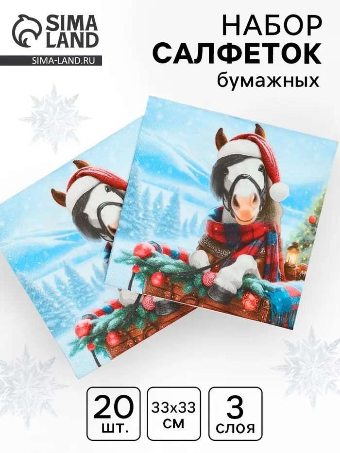 Салфетки бумажные трёхслойные «Красавица лошадка», 33х33, 20шт