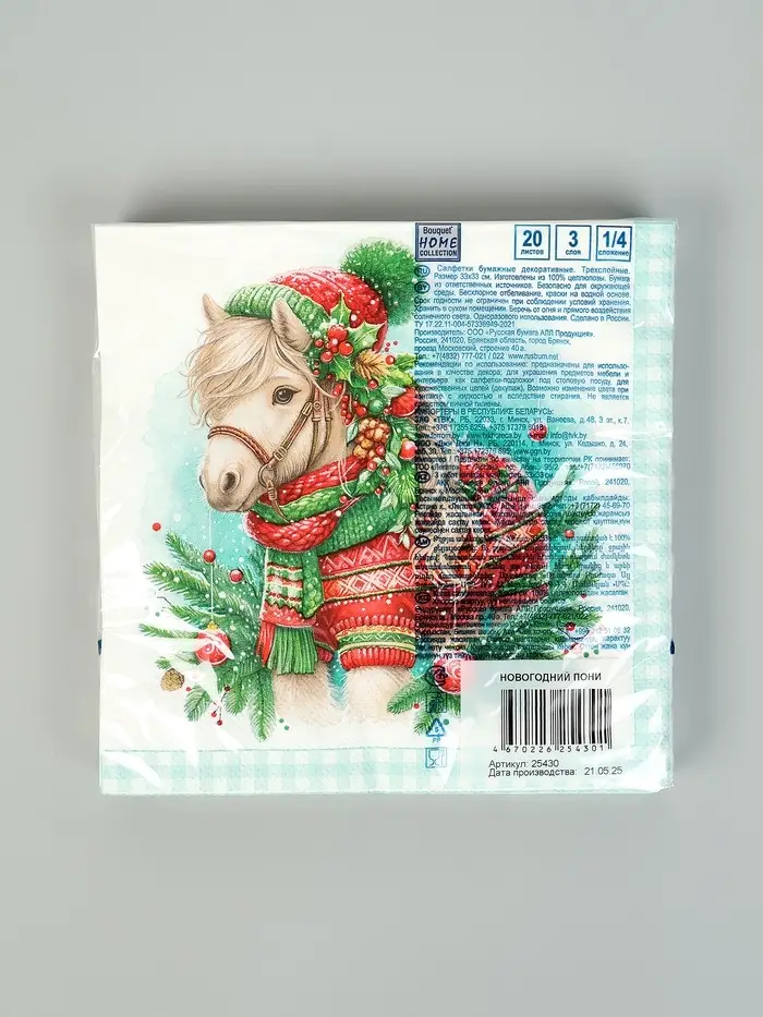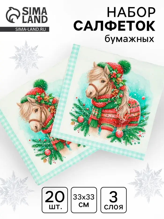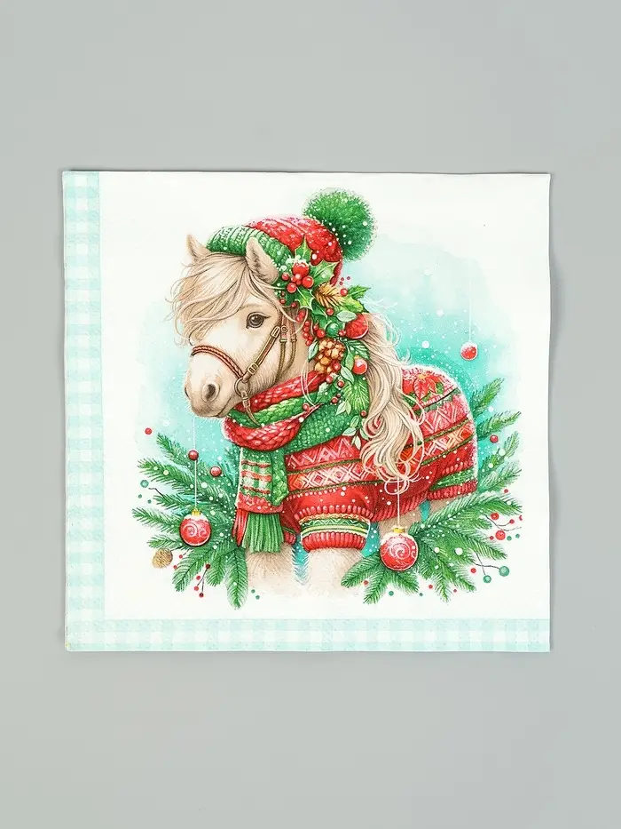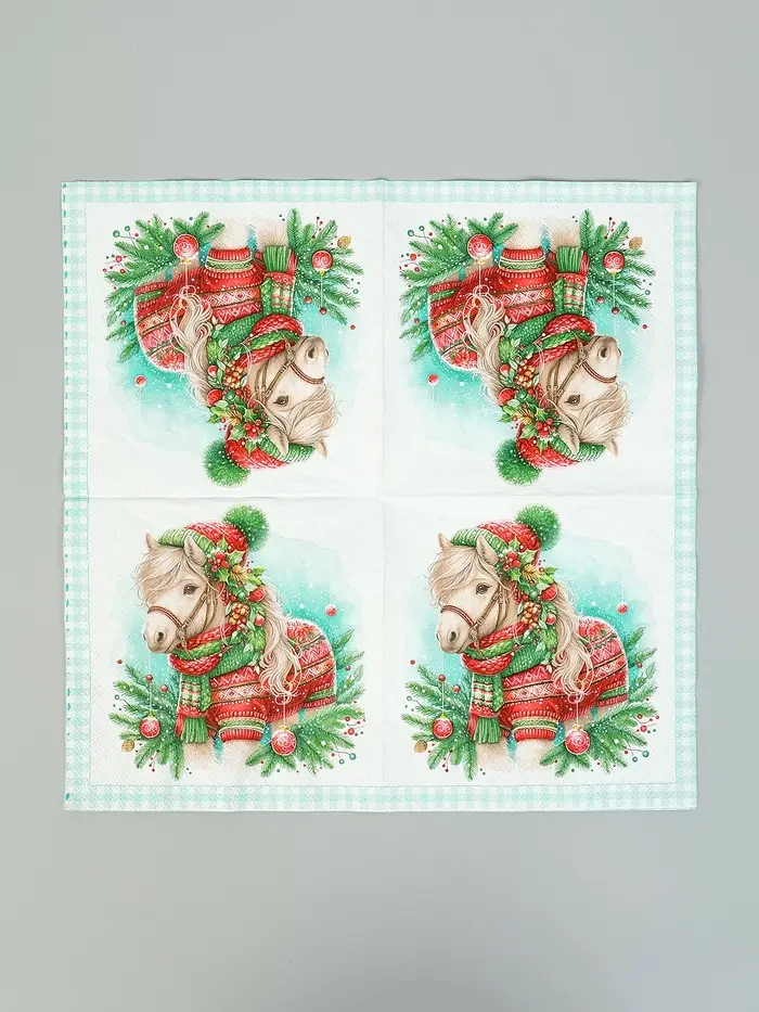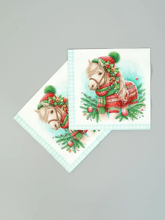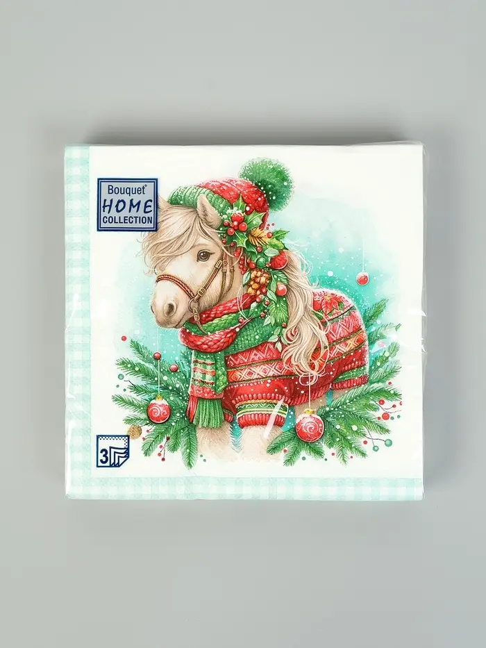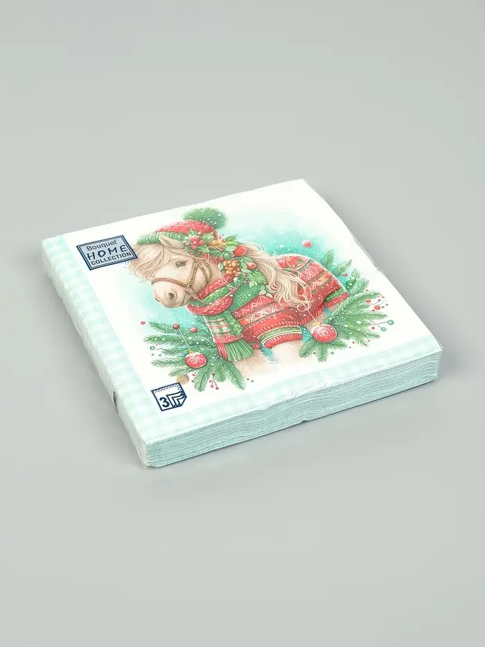 Салфетки бумажные трёхслойные «Новогодний пони», 33х33, 20шт