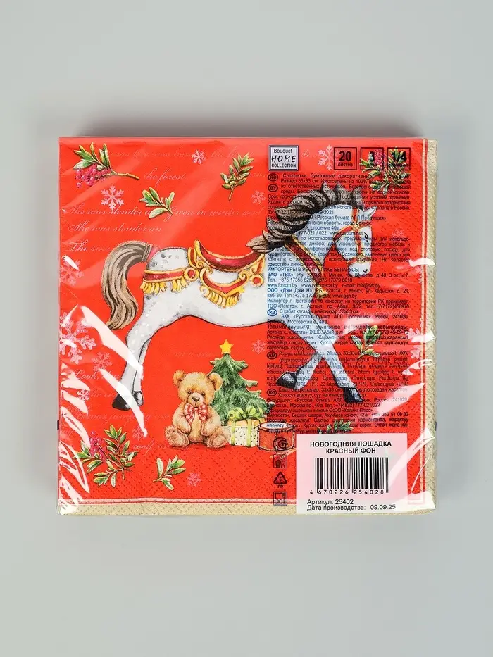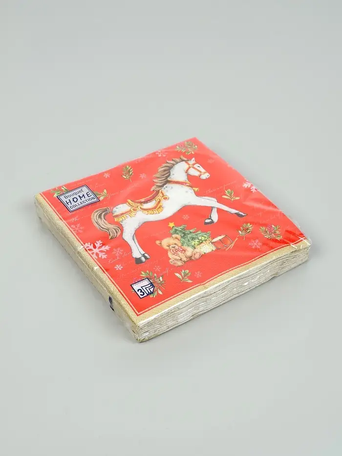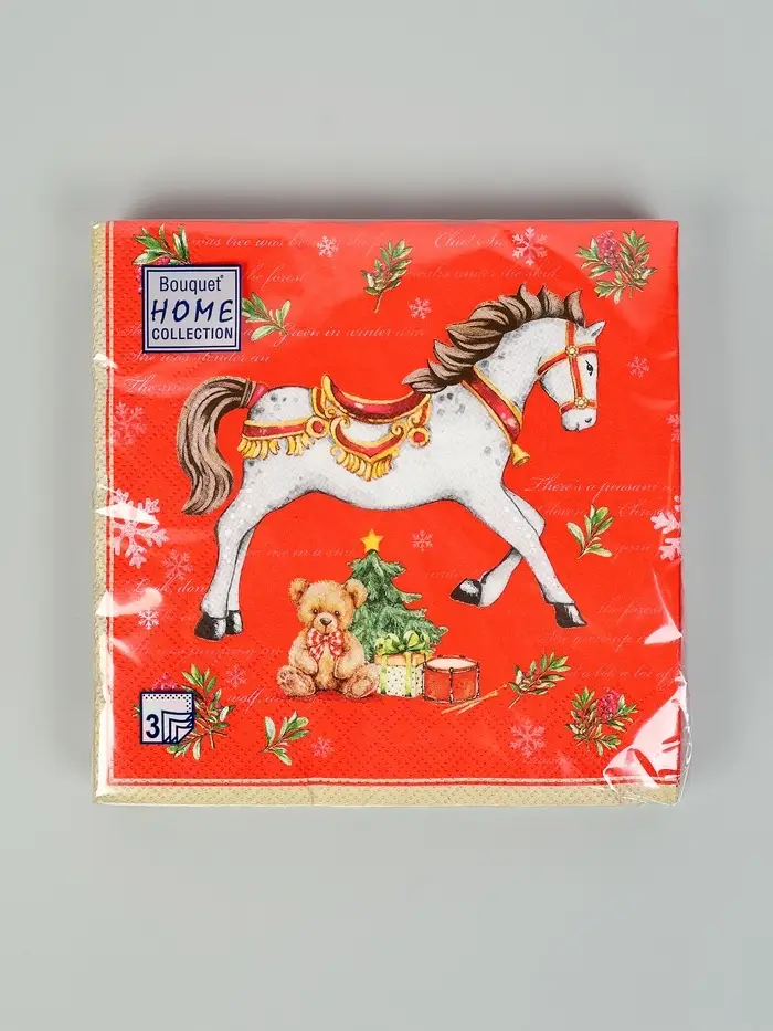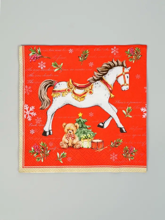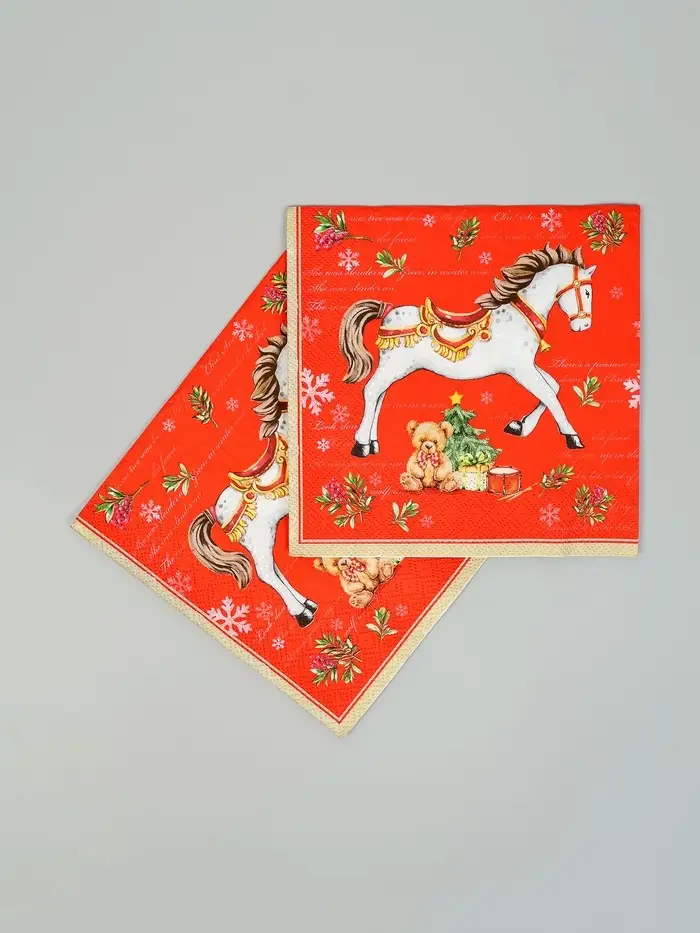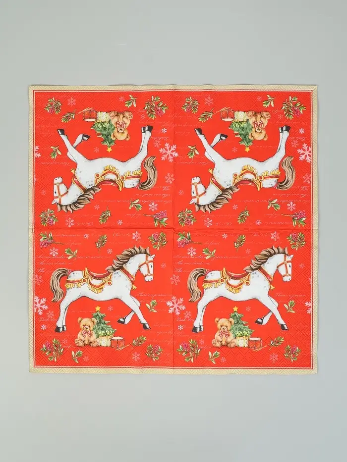Салфетки бумажные трёхслойные «Новогодняя лошадка. Красный фон», 33х33, 20шт