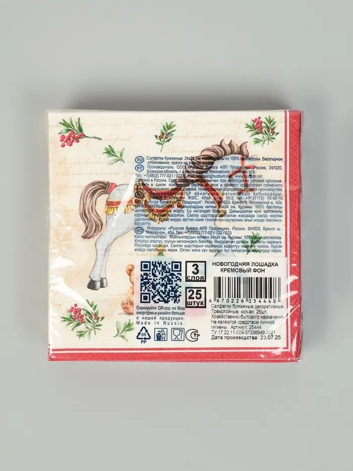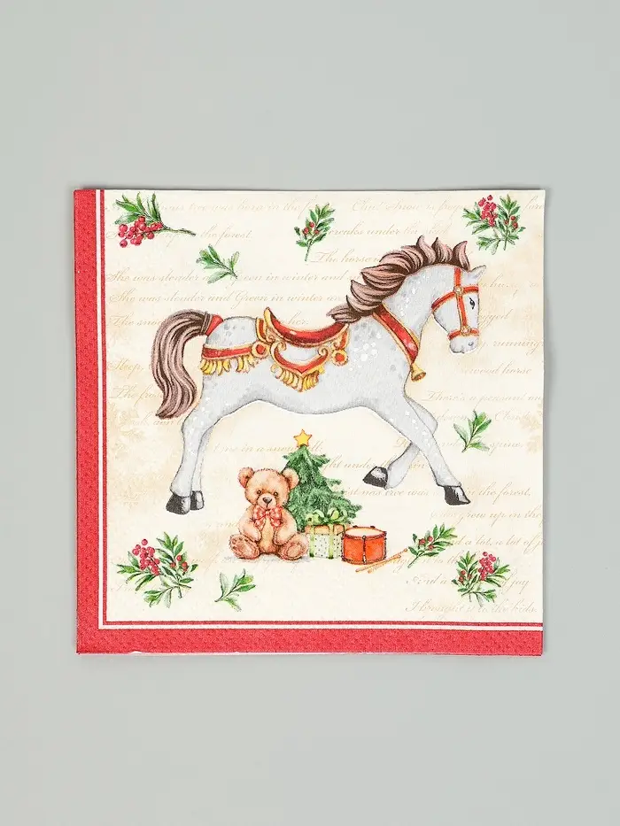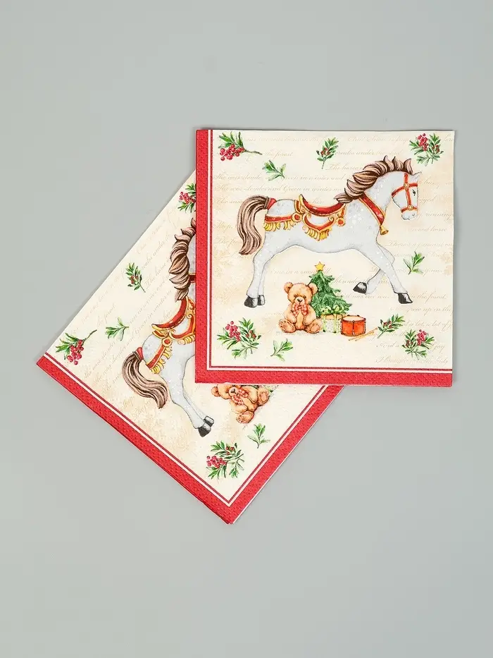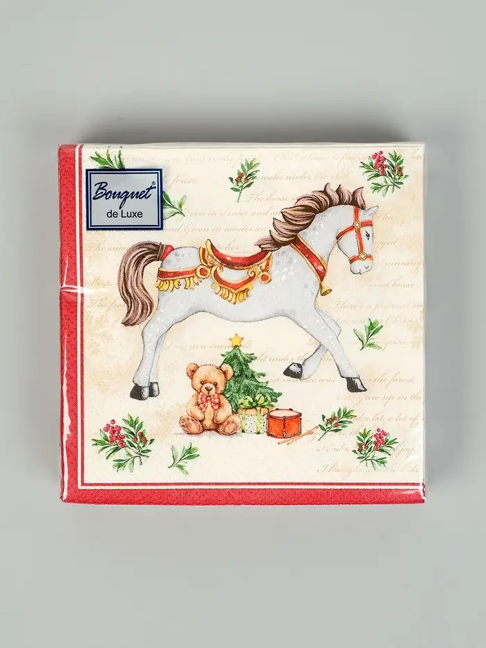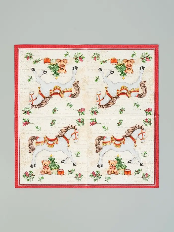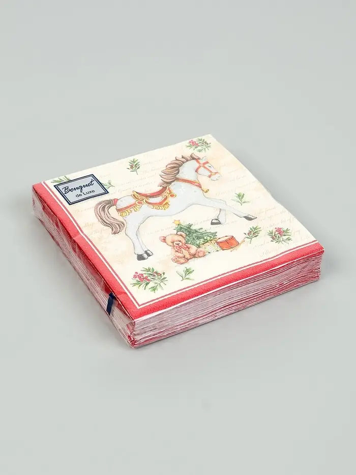 Салфетки бумажные трёхслойные «Новогодняя лошадка. кремовый фон», 24х24, 25 шт