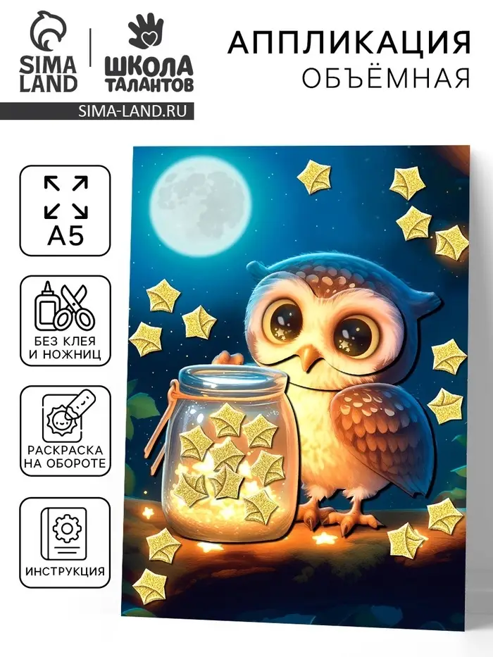 Объемная аппликация со звездочками оригами "Милая совушка"