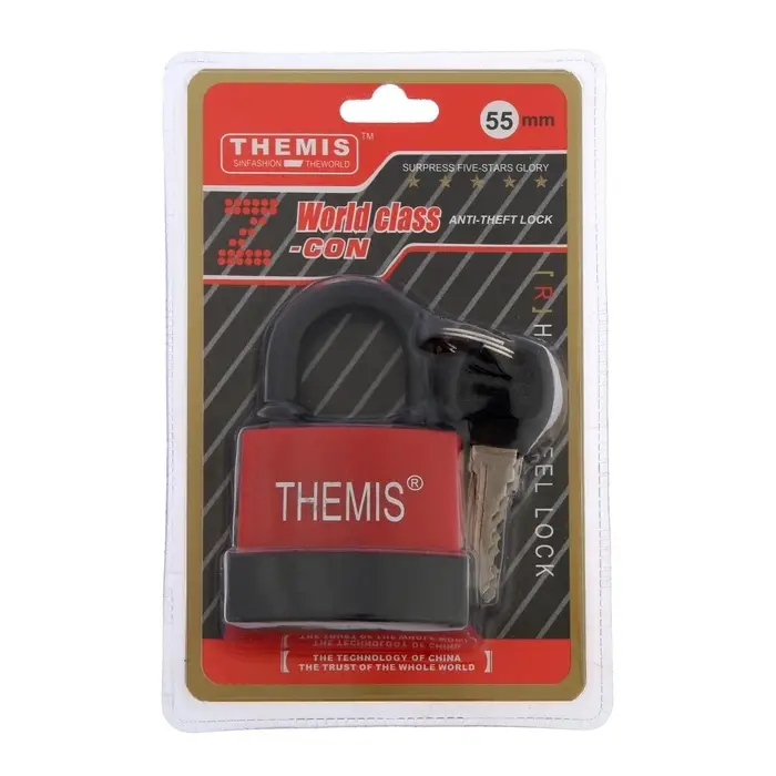 Замок навесной, 55 мм, медный цилиндр, влагозащищенный, короткая дужка, 3 ключа МИКС