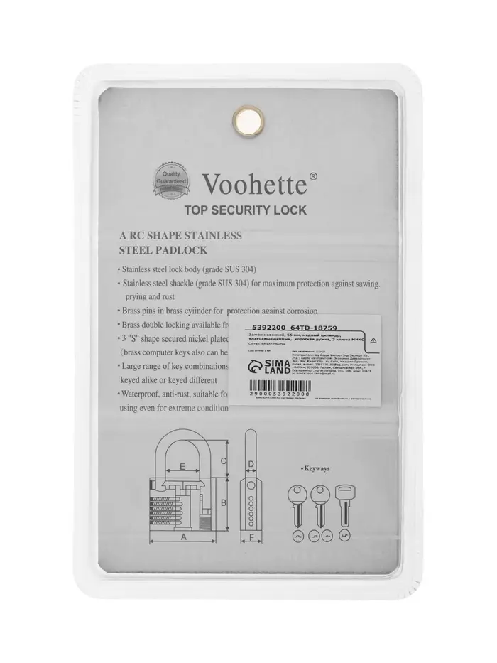 - Комплект из трёх ключей: В набор входят три английских ключа — достаточно для основных пользователей. Цилиндровый механизм обеспечивает базовый уровень защиты от взлома.