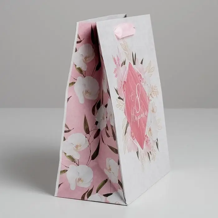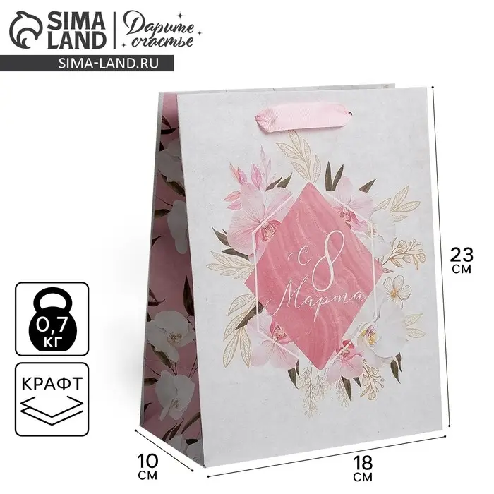 Пакет подарочный крафтовый вертикальный, упаковка, «8 марта», MS 18 х 23 х 10 см