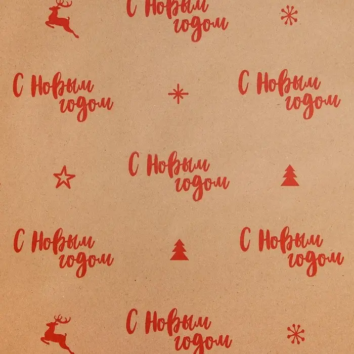 Бумага упаковочная крафтовая «С Новым годом!», 0.68 х 7 м
