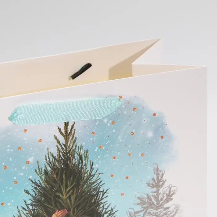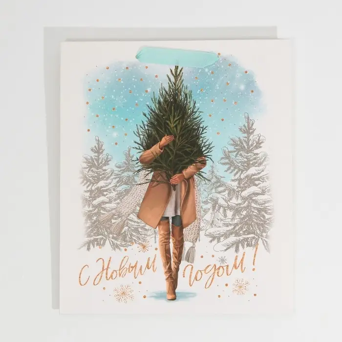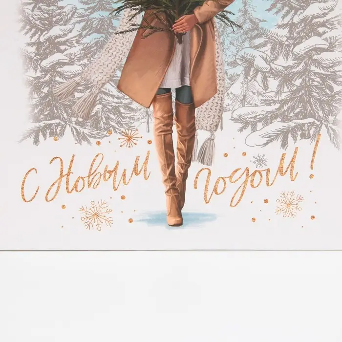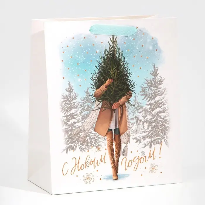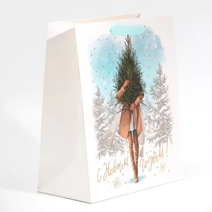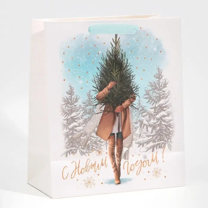 Пакет подарочный новогодний ламинированный «Девушка с ёлкой», ML 23 х 27 х 11,5 см