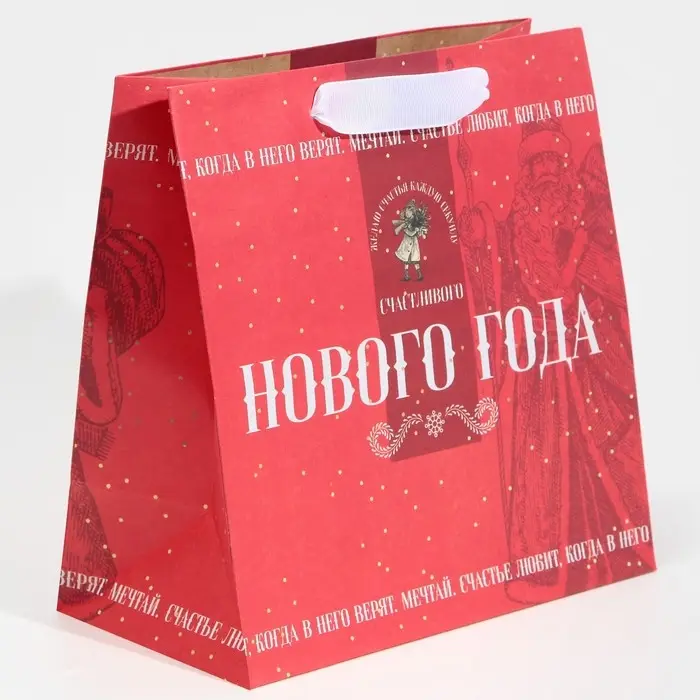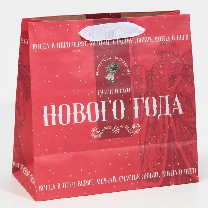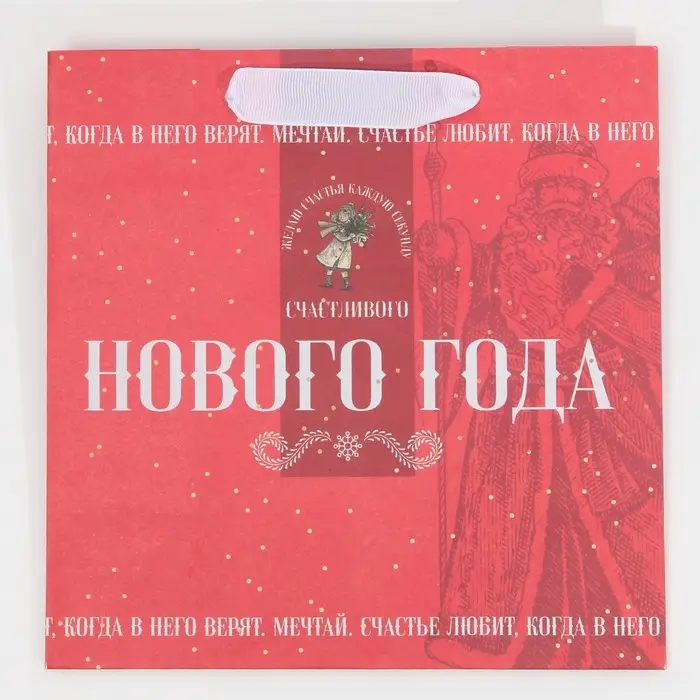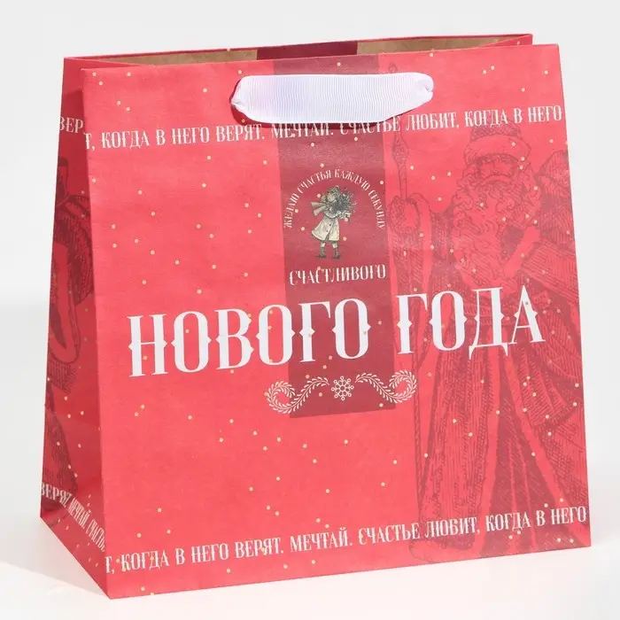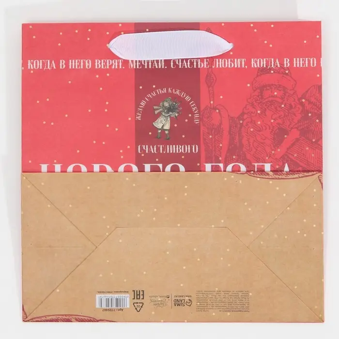 Пакет подарочный новогодний крафтовый квадратный «Снежная история», 22 х 22 х 11 см