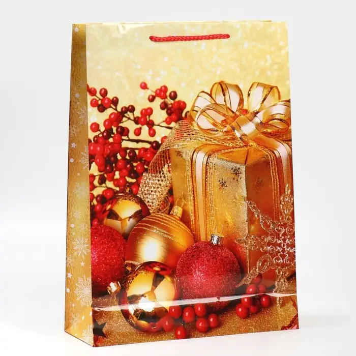 Пакет подарочный новогодний ламинированный «Поздравляю», L 28 х 38 х 9 см