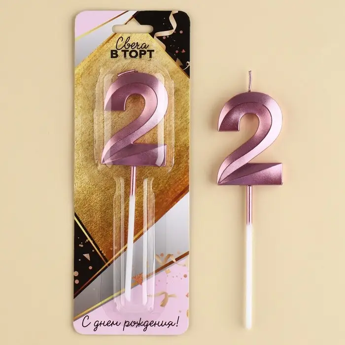 Свеча для торта "Лёд", цифра "2, сиреневая