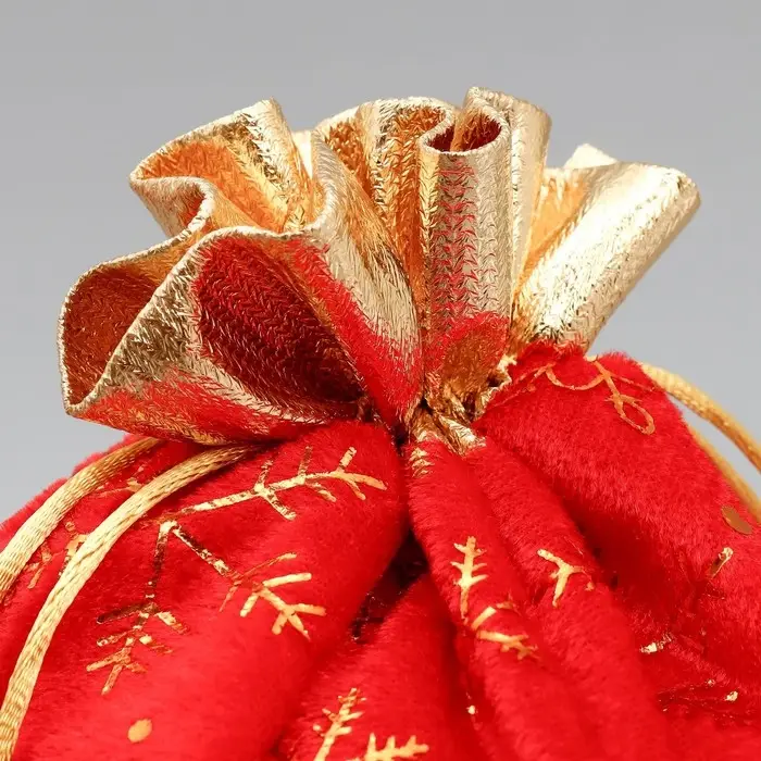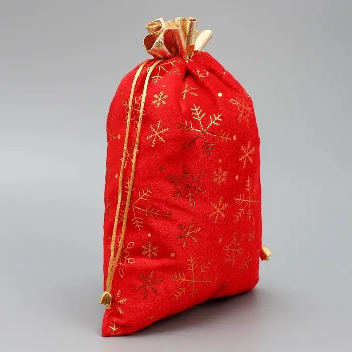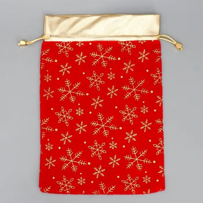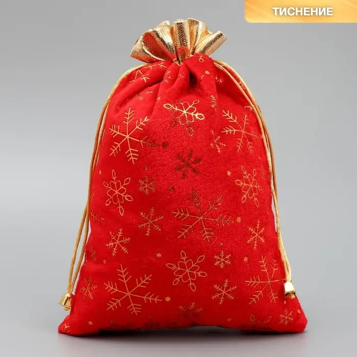 Мешочек подарочный плюш «Мешок Деда Мороза», снежинки, тиснение, 16 х 24 см +/- 1.5 см, Новый год