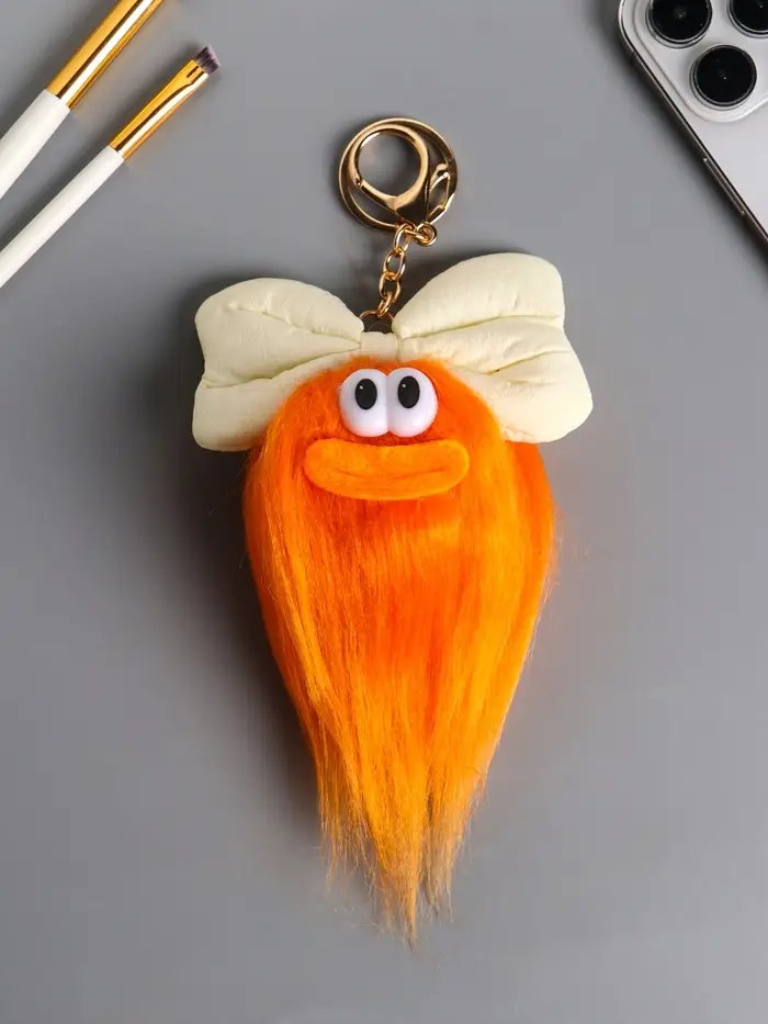 Пушистик на кольце "Чучундра с бантиком" оранж 18х10х5 см