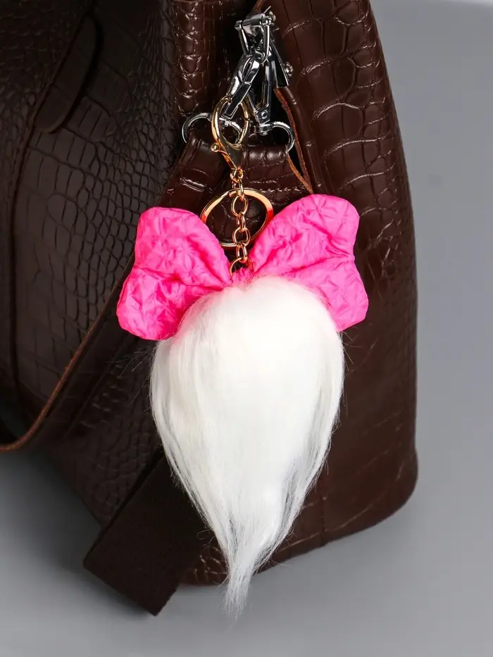 Пушистик на кольце "Чучундра с бантиком" белая 18х10х5 см