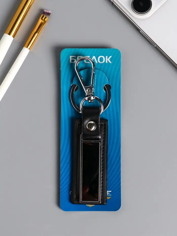 Брелок под нанесение кожзам, металл "Стиль" размер окна 4,5х1,3 см, чёрный 11,7х2,7х0,7 см 1090438