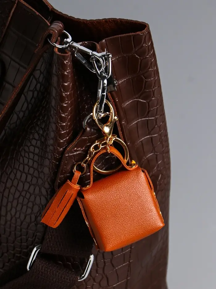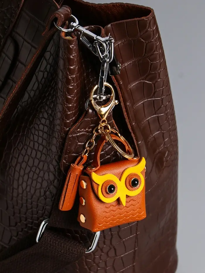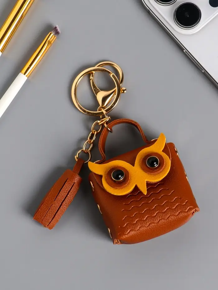 Брелок кожзам с карабином, с кистью "Сумочка. Сова" карамель 5,2х2,5х6 см