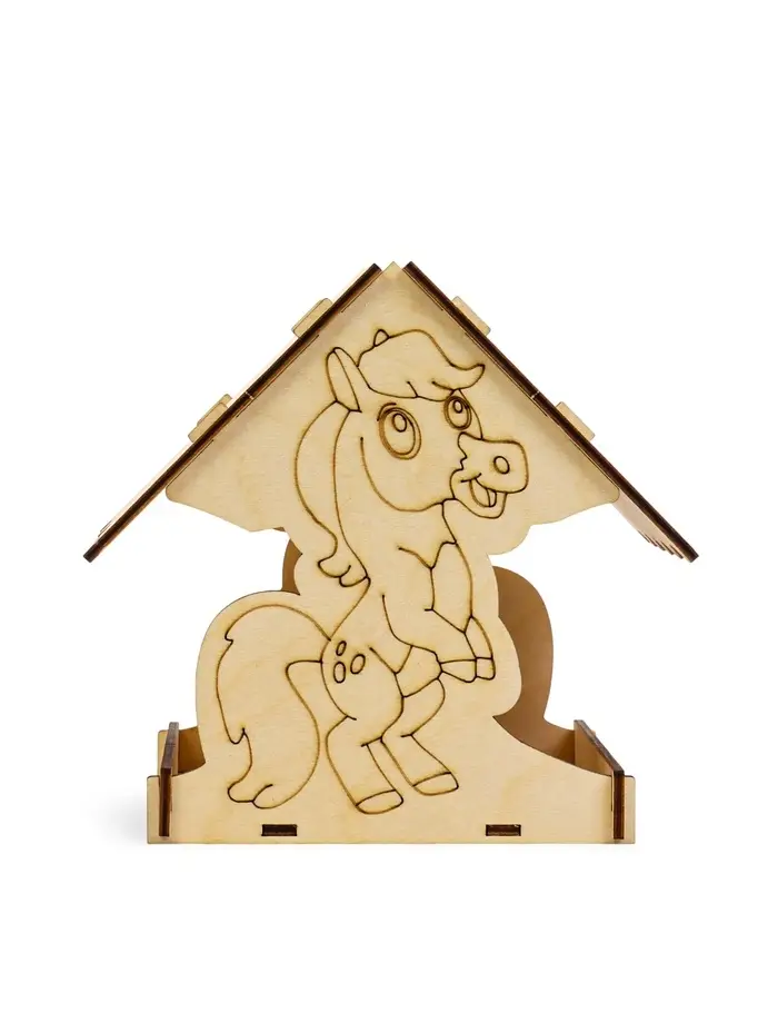 Кормушка для птиц дерево 18 x 16 x 15 см, Разобранная. "Лошадь" Символ Года