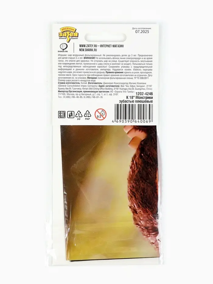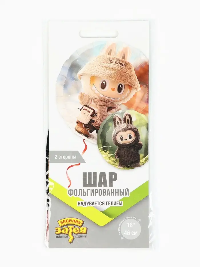 Воздушный шар фольгированный 18" круг "Монстрики зубастые плюшевые"2 ст., инд.уп.